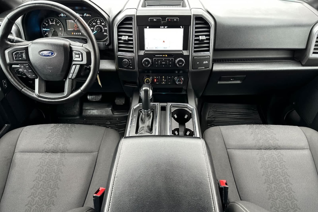 EQUIPMENT GROUP 302A LUXURY XLT Chrome Appearance Package, 2 chrome front tow hooks, Single-Tip Chrome Exhaust, Tires: P275/65R18 OWL Automatic Transmission, Chrome Door & Tailgate Handles w/Body-Color Bezel, bezel on side doors and black on tailgate, Wheels: 18 Chrome-Like PVD, 2-Bar Style Grille w/Chrome 2 Minor Bars, silver painted surround and black background mesh, Chrome Step Bars, Leather-Wrapped Steering Wheel, Remote Start System, 10-Way Power Driver & Passenger Seats, Rear Window Defroster, SiriusXM Radio, 7 speakers, Service is not available in Alaska and Hawaii, Subscriptions to all SiriusXM services are sold by SiriusXM after trial period, If you decide to continue service after your trial, the subscription plan you choose will automatically renew thereafter, XLT SPORT APPEARANCE PACKAGE body-color wheellip moldings and unique interior finish, Box Side Decals, Single-Tip Chrome Exhaust, Body-Color Door & Tailgate Handles, body-color bezel on side doors and black on tailgate, Wheels: 18 6-Spoke Machined-Aluminum, magnetic painted pockets, Tires: P275/65R18 OWL Automatic Transmission, Accent-Color Step Bars, Body-Color Front & Rear Bumpers, body-color front fascia, 2-Bar Style Grille w/2 Minor Bars Painted Dark, black surround and background mesh, ENGINE: 2.7L V6 ECOBOOST auto start-stop technology, 3.55 Axle Ratio, GVWR: 6,600 lbs Payload Package, VOICE-ACTIVATED TOUCHSCREEN NAVIGATION pinch-to-zoom capability, SiriusXM Traffic and Travel Link, Note: SiriusXM Traffic and Travel Link includes a, SiriusXM Traffic and Travel Link service is not available in Alaska or Hawaii, SiriusXM audio and data services each require a subscription sold separately, or as a package, by Sirius XM Radio Inc, If you decide to continue service after your trail, the subscription plan you choose will automatically renew thereafter and you will be charged according to your chosen payment method at then-current rates, Fees and taxes apply, To cancel you must call SiriusXM at 1-866-635-2349, See SiriusXM customer agreement for complete terms at www.siriusxm.com, All fees and programming subject to change, Sirius, XM and all related, SOFT FOLDING TONNEAU BOX COVER (DEALER INSTALLED) Factory Invoiced Accessories (FIA), Shipped separately from the vehicle for dealer installation, PLASTIC DROP-IN BEDLINER, TRAY STYLE FLOOR LINER, TRANSMISSION: ELECTRONIC 10-SPEED AUTOMATIC selectable drive modes: normal/tow-haul/snow-wet/EcoSelect/sport. 2019 Ford F-150 with Magma Red exterior and Black interior features a V6 Cylinder Engine with 290 HP at 6500 RPM*.
