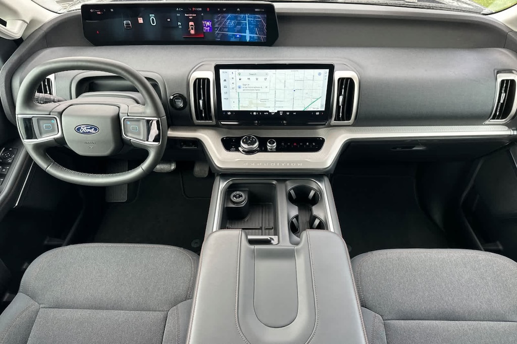 Third Row Seat, Navigation, 4x4, Power Liftgate, Rear Air, Back-Up Camera, Running Boards, Turbocharged, Satellite Radio, iPod/MP3 Input, Onboard Communications System, Trailer Hitch, Aluminum Wheels, Remote Engine Start, Dual Zone A/C. Rear Spoiler, MP3 Player, Remote Trunk Release, Keyless Entry, Privacy Glass. 2025 Ford Expedition with Dark Matter Gray exterior and Dark Gray interior features a V6 Cylinder Engine with 400 HP at 5200 RPM*. Approx. Original Base Sticker Price: $63,200*.