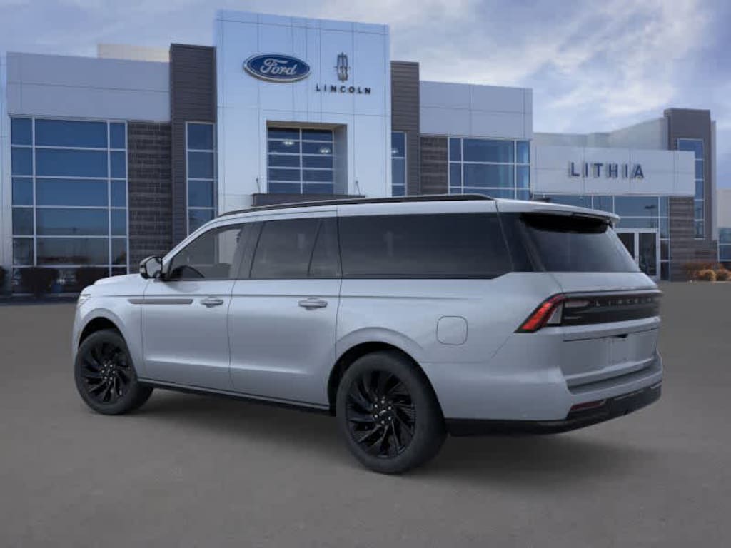 JET APPEARANCE PACKAGE Wheels: 22 High-Gloss Ebony Aluminum, Black Painted Roof Rails, Black Accent Badge, Lincoln Lit Star, Front Bumper Fascia, Unique Lincoln Grille Pillar Black Surround, black mesh insert, Black Beltline Molding, Black Accent Interior Pack, 2ND ROW HEATED & VENTILATED DUAL CAPTAINS CHAIR massage w/power tailored seats and 40/console/40 seat structure (console w/5.8 LCD touchscreen and multimedia audio controls), TRANSMISSION: 10-SPEED AUTOMATIC SelectShift capability (STD). 2025 Lincoln Navigator L with Glacier Gray Metallic Tri-Coat exterior and Black Onyx interior features a V6 Cylinder Engine with 440 HP at 5400 RPM*. Approx. Original Base Sticker Price: $113,300*.