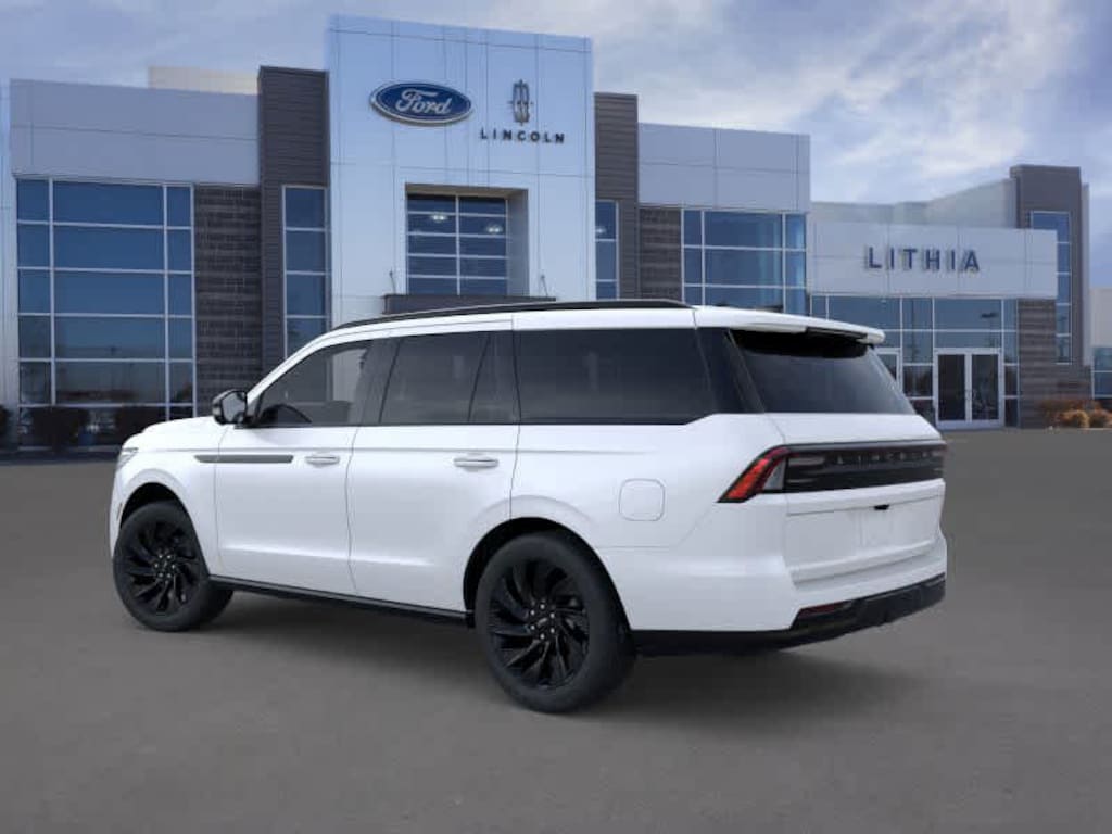 TRANSMISSION: 10-SPEED AUTOMATIC SelectShift capability (STD). 2026 Lincoln Navigator with Pristine White Metallic Tri-Coat exterior and Black Onyx interior features a V6 Cylinder Engine with 440 HP at 5400 RPM*. Approx. Original Base Sticker Price: $112,600*.