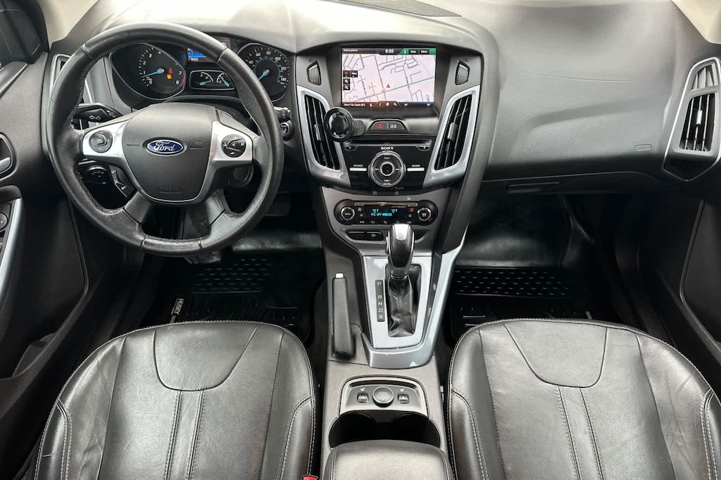 NAVIGATION, TRANSMISSION: 6-SPEED POWERSHIFT AUTOMATIC SelectShift capability (STD). 2014 Ford Focus with Ruby Red Metallic Tinted Clearcoat exterior and Charcoal Black interior features a 4 Cylinder Engine with 160 HP at 6500 RPM*.