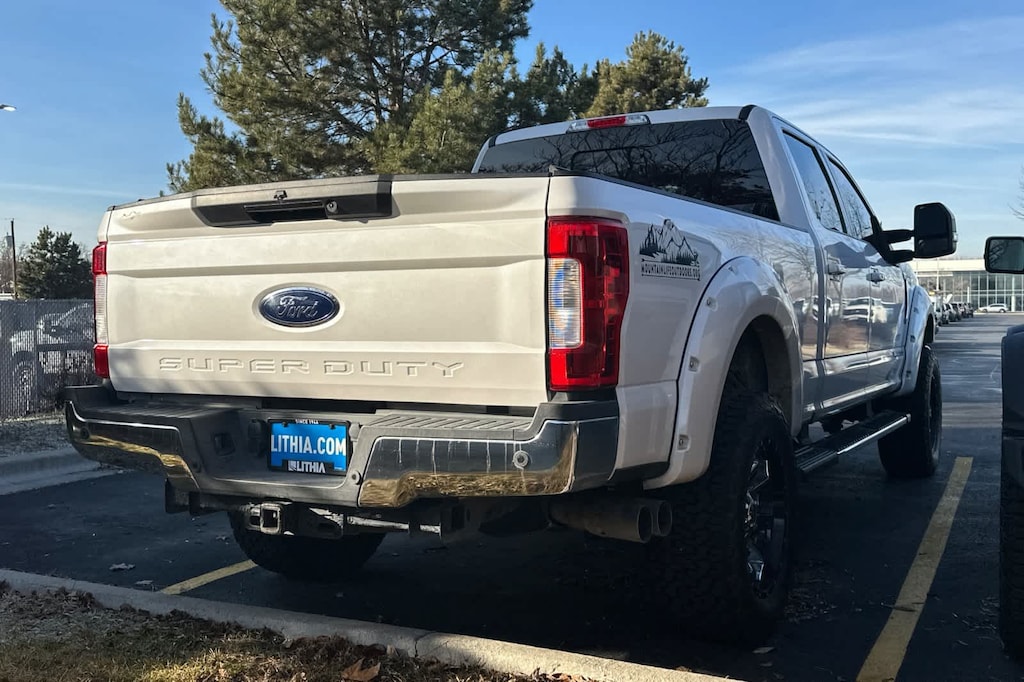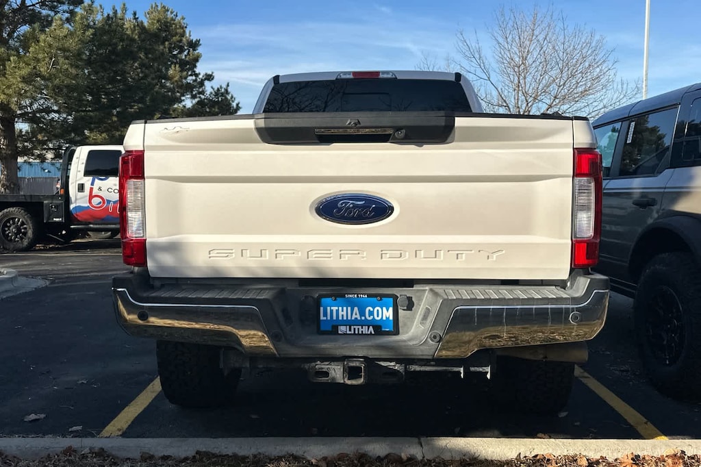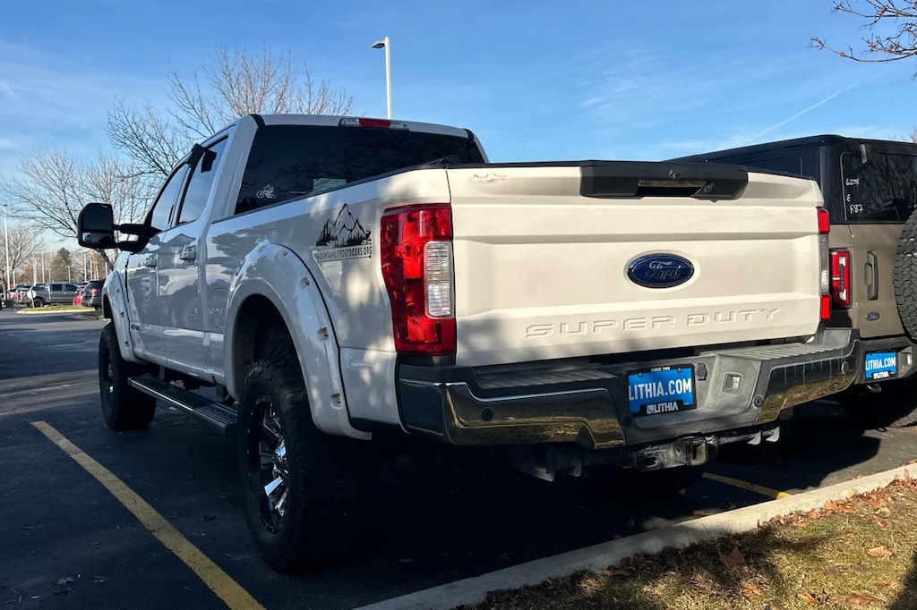 ENGINE: 6.7L 4V OHV POWER STROKE V8 TURBO DIESEL B20 manual push-button engine-exhaust braking and intelligent oil-life monitor, Extra Heavy-Duty 220 Amp Alternator, 34 Gallon Fuel Tank, 3.31 Axle Ratio, Dual 78-AH 750 CCA Batteries, LARIAT ULTIMATE PACKAGE Power Heated/Cooled Driver Seat w/Memory, PowerScope Trailer Tow Mirrors w/Memory, Automatic High Beam, rain-sensing windshield wipers, EASY ENTRY®/Exit Memory Drivers Seat Feature, Tailgate Step & Handle, LED Box Lighting, LED Center High-Mounted Stop Lamp (CHMSL), Intelligent Access w/Push-Button Start, Power Heated/Cooled Passenger Seat, Voice-Activated Navigation, HD and SiriusXM Traffic and Travel Link, NOTE: SiriusXM Traffic and Travel Link includes a, Services are not available in Alaska and Hawaii, Memory Power-Adjustable Pedals, Remote Start System, Ambient Lighting - Fixed Color, Power Telescoping/Tilt Steering Wheel/Column, heat, memory and audio controls, Remote Tailgate Release, WHEELS: 20 BRIGHT MACHINED CAST ALUMINUM magnetic painted pockets and bright hub covers/center ornaments, 6 ANGULAR CHROME EXTENDED RUNNING BOARDS, ELECTRONIC-LOCKING W/3.55 AXLE RATIO, TRANSMISSION: TORQSHIFT 6-SPEED AUTOMATIC (6R140), SelectShift. 2019 Ford Super Duty F-250 Pickup with White Platinum Metallic Tri-Coat exterior and Medium Light Camel interior features a 8 Cylinder Engine with 450 HP at 2800 RPM*.