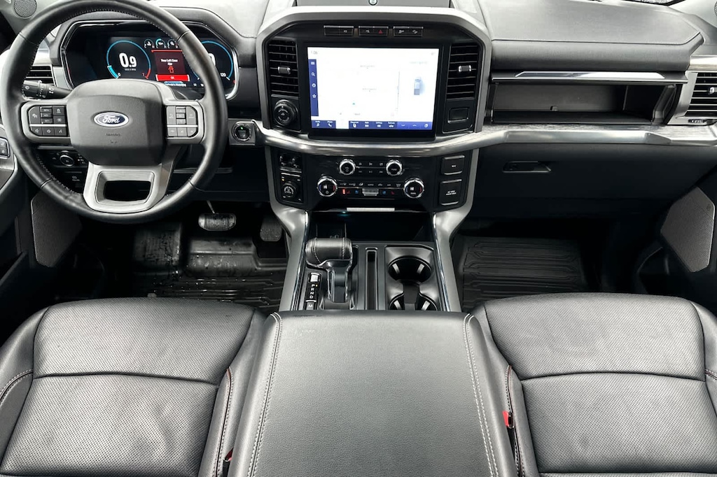 LARIAT CHROME APPEARANCE PACKAGE 2 chrome front tow hooks, Chrome Single-Tip Exhaust, 6 Chrome Running Board, Chrome Door & Tailgate Handles w/Body-Color Bezel, Wheels: 18 Chrome-Like PVD, Chrome 2-Bar Grille w/4 Minor Bars, painted silver surround and background mesh, Chrome Skull Caps on Exterior Mirrors, ENGINE: 3.5L V6 ECOBOOST auto start-stop technology, GVWR: 7,050 lbs Payload Package, 3.31 Axle Ratio, EQUIPMENT GROUP 501A MID Radio: B&O Sound System by Bang & Olufsen, HD radio and 8 speakers including subwoofer, Universal Garage Door Opener, Onboard 400W Outlet, Replaces two (2) front USB charge only ports, 360 DEGREE CAMERA trailer reverse guidance, FORD CO-PILOT360 ASSIST 2.0 Evasive Steering Assist, Intelligent Adaptive Cruise Control w/Stop & Go, lane centering, Speed Sign Recognition, Connected Built-In Navigation, Navigation services require SYNC4 and FordPass Connect (optional on select vehicles), complimentary connect service and the FordPass app (see FordPass Terms for details), Eligible vehicles receive a complimentary 90-day trial of navigation services that begins on the new vehicle warranty start date, Customers must unlock the navigation service trial by activating the eligible vehicle w/a FordPass member account, If not subscribed by the end of the complimentary period, the navigation service will terminate, Connected service and features depend on compatible AT&T network availability, Evolving technology/cellular, ELECTRONIC LOCKING W/3.55 AXLE RATIO, TRANSMISSION: ELECTRONIC 10-SPEED AUTOMATIC selectable drive modes: normal, ECO, sport, tow/haul, slippery, deep snow/sand and mud/rut (STD). 2021 Ford F-150 with Space White exterior and Black interior features a V6 Cylinder Engine with 325 HP at 5000 RPM*.