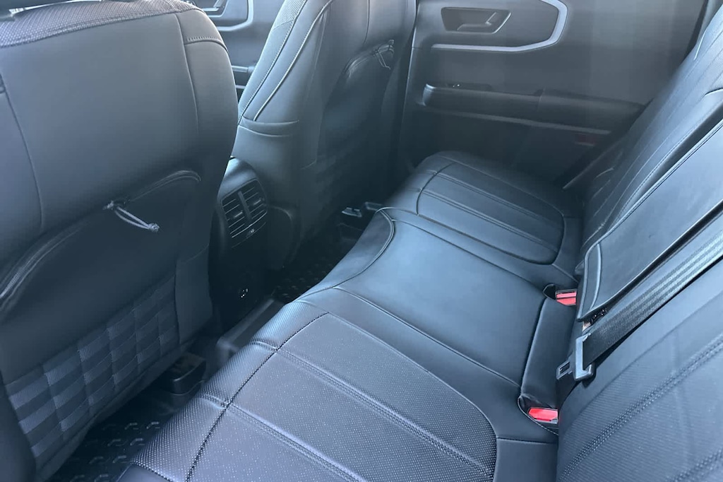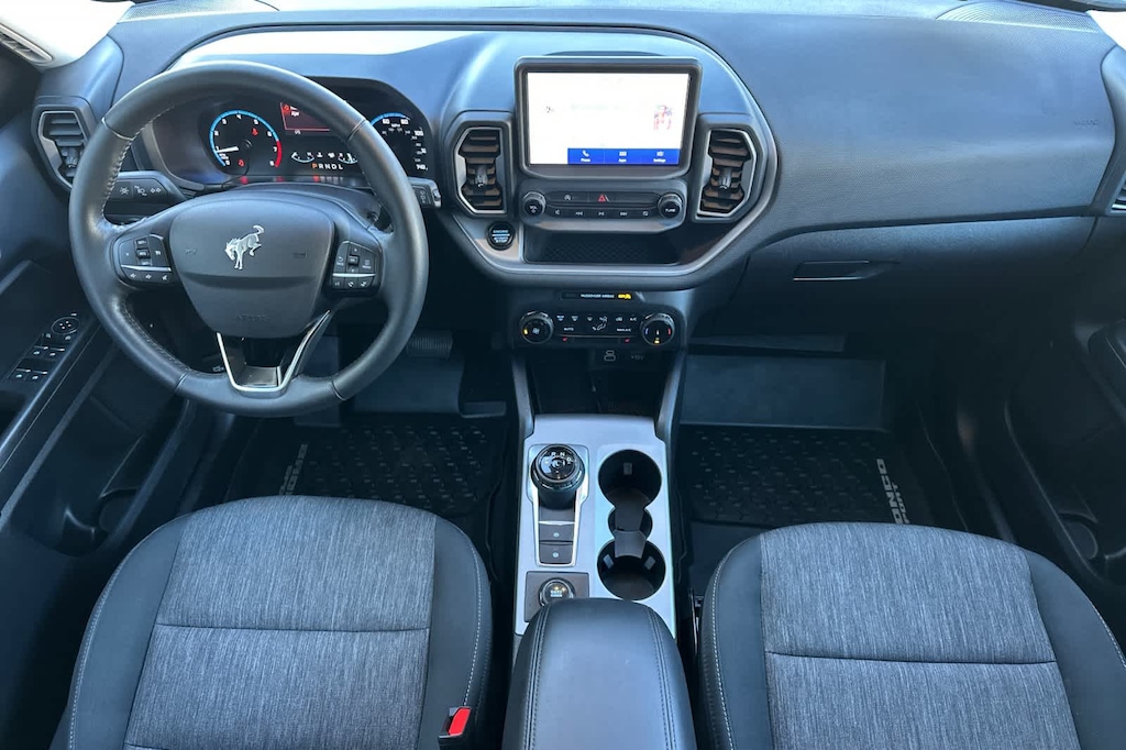 CONVENIENCE PACKAGE Front Driver & Passenger Seatback Zipper Pockets, Leather-Wrapped Steering Wheel, Rear Parking Sensors, Wireless Charging Pad, Heated Front Bucket Seats, 8-way power drivers seat (fore/aft, up/down, recline, lumbar), LED Fog Lamps, Universal Garage Door Opener (UGDO), Intelligent Access (Lock/Unlock), push-button start and SecuriCode keyless-entry keypad, ENGINE: 1.5L ECOBOOST auto start-stop technology (STD). 2023 Ford Bronco Sport with Area 51 exterior and Ebony interior features a 3 Cylinder Engine with 181 HP at 6000 RPM*.