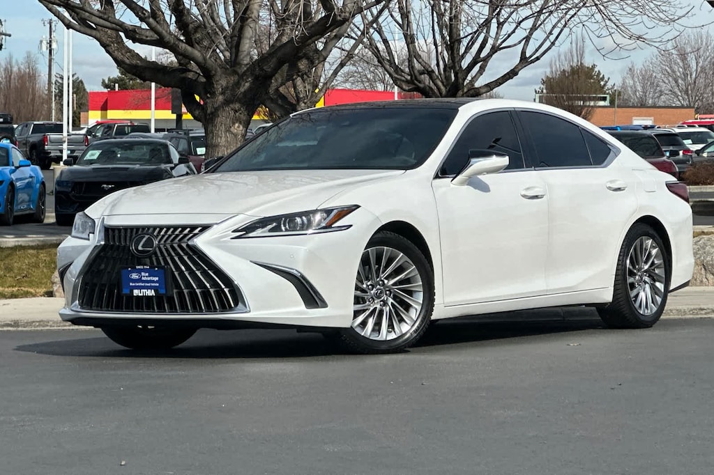 NAVIGATION W/MARK LEVINSON AUDIO 12.3 color multimedia touch-screen display, DVD Lexus Enform Dynamic Navigation (included for the first three years of ownership), Dynamic Voice Command (included for up to the first 10 years of ownership), Lexus Enform Destination Assist (included for up to the first three years of ownership) and 17 speakers and 1,800-watt PurePlay premium surround sound audio system, Electrochromatic Rearview Mirror, INTUITIVE PARKING ASSIST & PANORAMIC VIEW MONITOR front/side/rear camera back monitor, Intelligent Clearance Sonar, Rear Pedestrian Detection, Parking Support Alert/Brake, HANDS-FREE POWER OPEN/CLOSE TRUNK kick sensor, 10.2 HEAD-UP DISPLAY (HUD), PANORAMIC GLASS ROOF tilt and slide sun roof and moon roof, ACCESSORY PACKAGE 2 Carpet Trunk Mat (PPO), Rear Bumper Applique (PPO), Key Gloves (PPO), Alloy Wheel Locks (PPO), Cargo Net (PPO). 2022 Lexus ES 350 with Eminent White Pearl exterior and PALOMINO W/ MATTE WALNUT OPEN PORE interior features a V6 Cylinder Engine with 302 HP at 6600 RPM*.