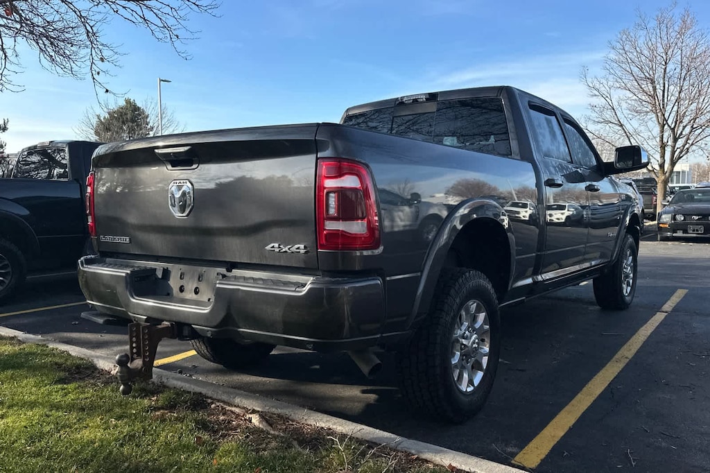 LARAMIE LEVEL D EQUIPMENT GROUP Mirror-Mounted Aux Reverse Lamps, Rain Sensitive Windshield Wipers, Power Adjustable Pedals w/Memory, Ventilated Front Seats, Power Multi-Function Manual Folding Mirrors, Remote Tailgate Release, 17 Speaker harman/kardon Premium Sound, Auto High Beam Headlamp Control, Exterior Mirrors w/Memory, Heated Second Row Seats, Foam Bottle Insert (Door Trim Panel), 2nd Row In Floor Storage Bins, Radio/Driver Seat/Mirrors/Pedals Memory, Radio: Uconnect 5 Nav w/8.4 Display, Off-Road Information Pages, Disassociated Touchscreen Display, HD Radio, For Details, Visit DriveUconnect.com, For More Info, Call 800-643-2112, GPS Navigation, SiriusXM w/360L, All Radio Equipped Vehicles, Connected Travel & Traffic Services, All R1 High Radios, Alexa Built-In, TOW-MODE DIGITAL REARVIEW MIRROR PACKAGE Digital Rearview Mirror, Tow-Mode Camera (Wired) (DISC), OFF ROAD PACKAGE Front Performance Tuned Shock Absorbers, Tow Hooks, Off Road Decal, Hill Descent Control, Rear Performance Tuned Shock Absorbers, ANTI-SPIN DIFFERENTIAL REAR AXLE, TRANSMISSION: 8-SPEED AUTO (8HP75-LCV) (STD), ENGINE: 6.4L V8 HEAVY DUTY HEMI MDS (STD). 2022 Ram 2500 with Granite Crystal Metallic Clearcoat exterior and Black interior features a 8 Cylinder Engine with 410 HP at 5600 RPM*.