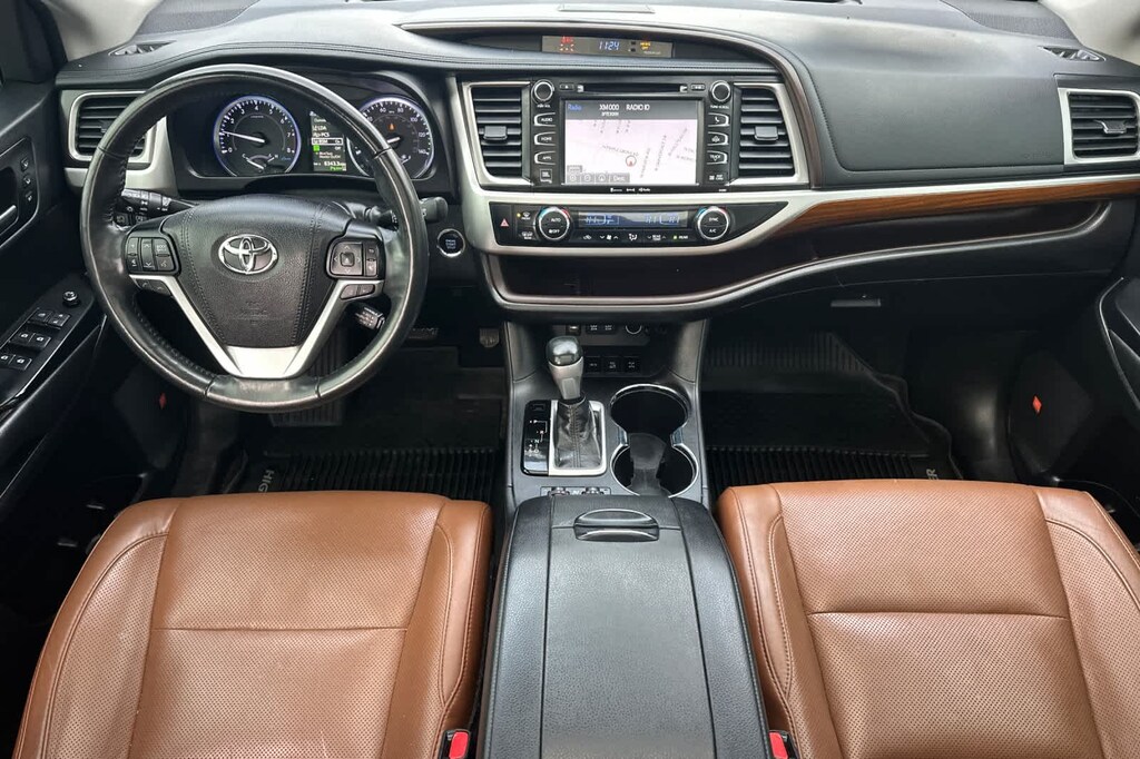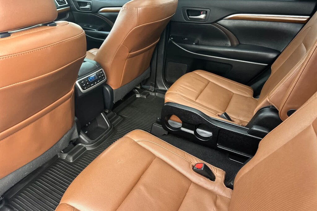 SEATING FOR 7: HEATED 2ND ROW CAPTAIN SEATS folding side table w/two cupholders. 2019 Toyota Highlander with Blizzard Pearl exterior and SADDLE TAN interior features a V6 Cylinder Engine with 295 HP at 6600 RPM*.